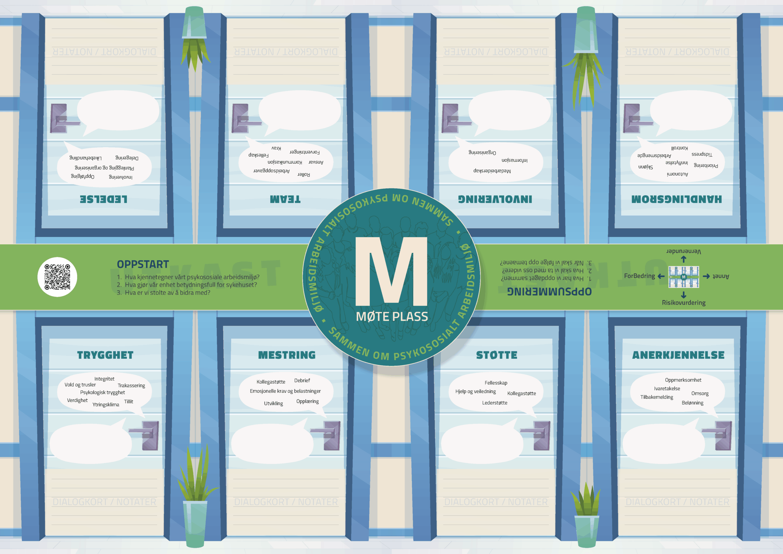 Verktøyet hjelper til med å utforske og forstå. Det er ikke et måleinstrument. Det erstatter heller ikke ordinær kartlegging eller risikovurdering. Punkter som kommer frem gjennom dialogen og som kan kreve tiltak, håndteres i de ordinære HMS-prosessene.